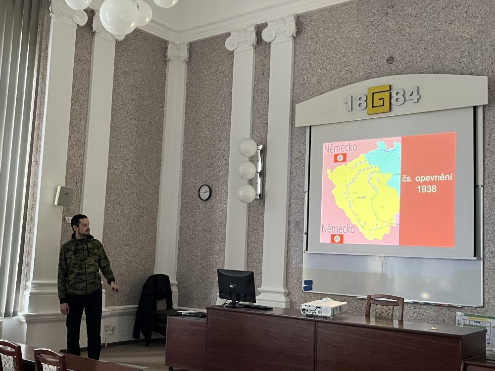 V pondělí 16. 2. 2026 zavítal na naši školu pan Mgr. Zdeněk Hanáček, aby nám, studentům seminářů moderních dějin, přednášel o období předcházející druhé světové válce. Řeč byla o systému československého opevnění, který čerpal inspiraci od francouzské Maginotovy linie a zdaleka nebyl dokončen podle původního plánu, který byl daleko rozsáhlejší, o rozsazení tzv. ŘOPíků (přičemž pan Hanáček sám obrovské množství těchto malých pevností sám navštívil) nebo třeba také o tom, jak se s bývalými vojenskými objekty pracuje dnes.